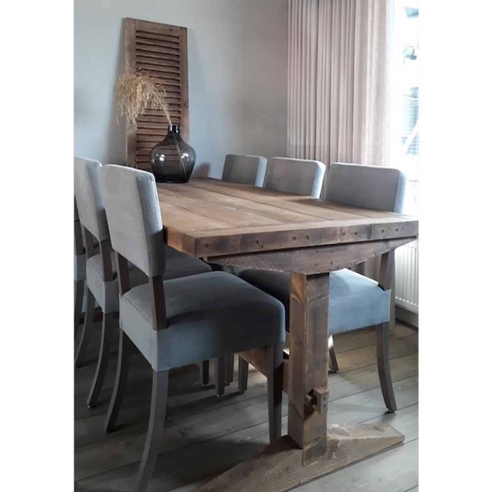 Let op, in oud hout kunnen we deze tafel niet langer maken dan 3 meter !