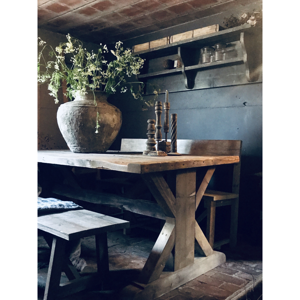 Let op, in oud hout kunnen we deze tafel niet langer maken dan 300 cm!