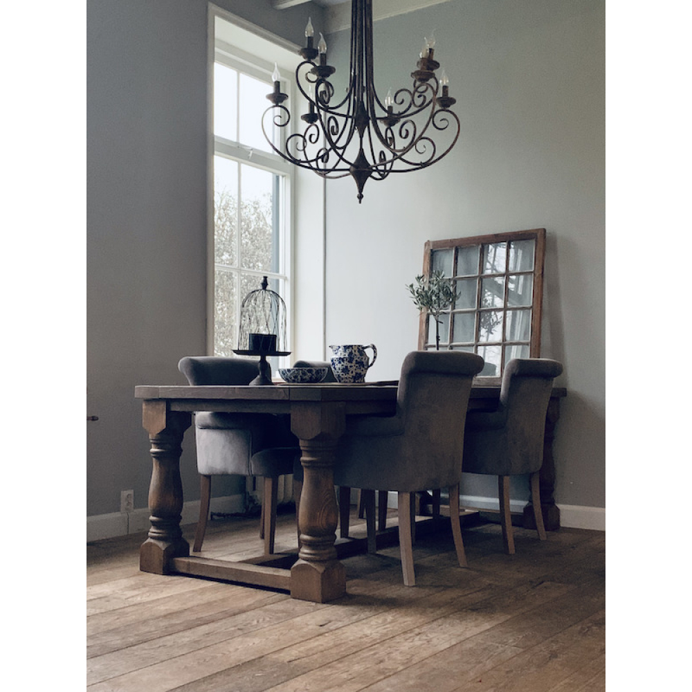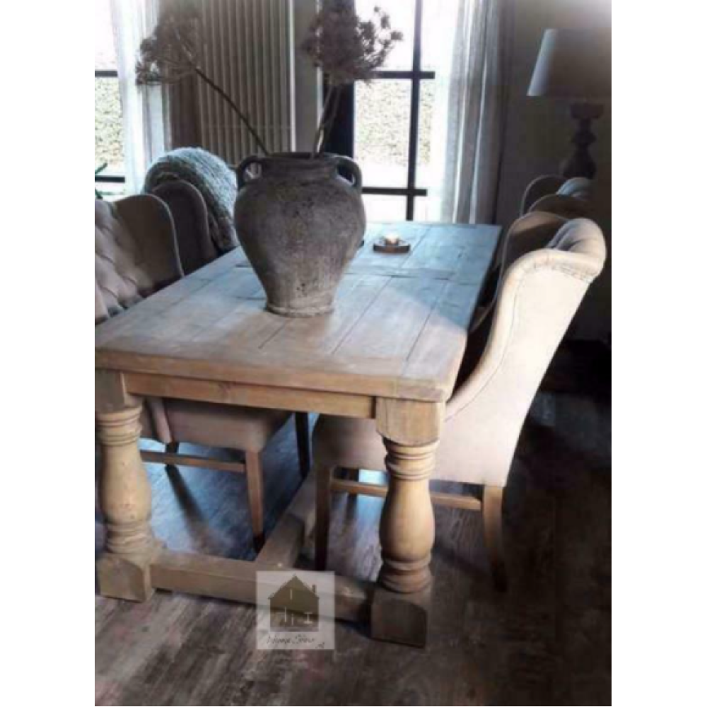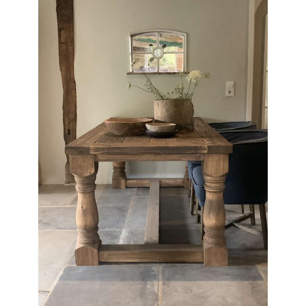 Let op! In oud hout kunnen we de tafel niet langer maken dan 3 meter.