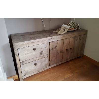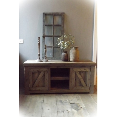 Let op: in oud hout is het meubel niet langer dan 220 cm te maken. Onwijs stoer landelijk tv-meub.....