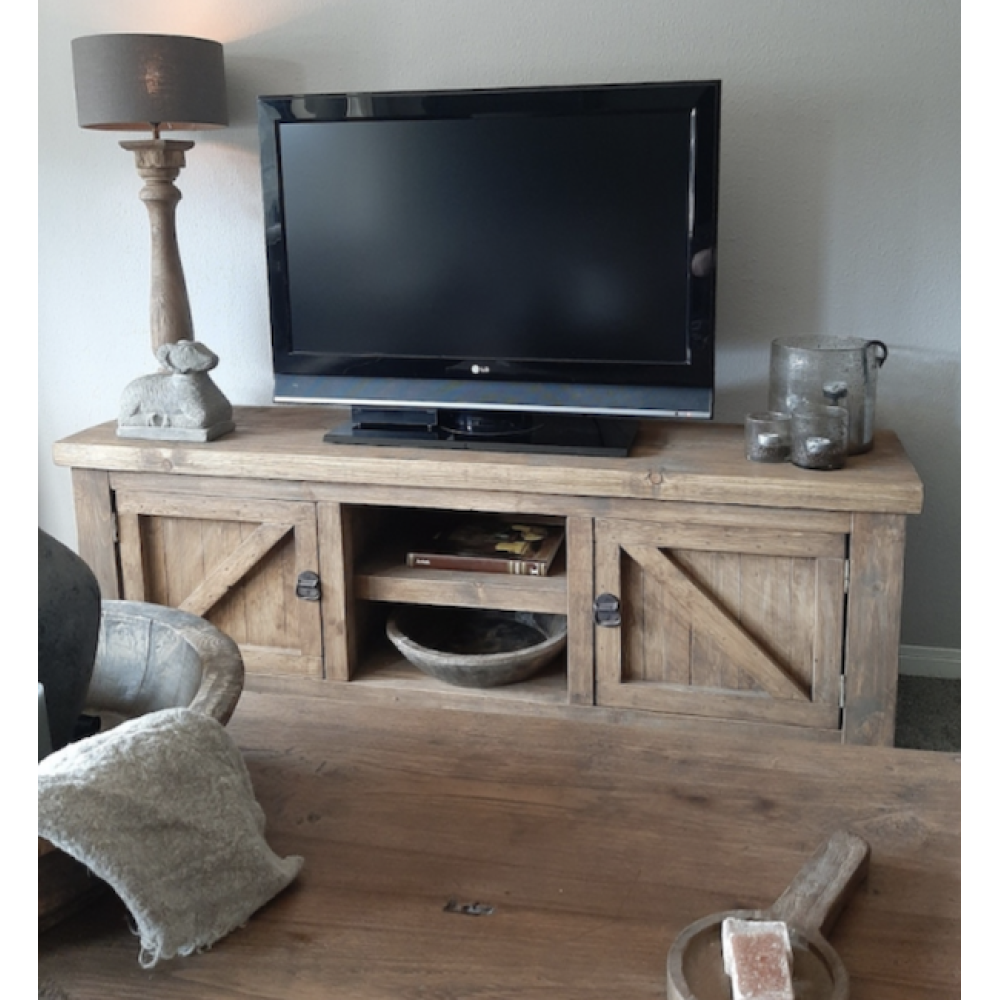 Onwijs stoer landelijk tv-meubel. Met leuke staldeur/schoren in de deurtjes!