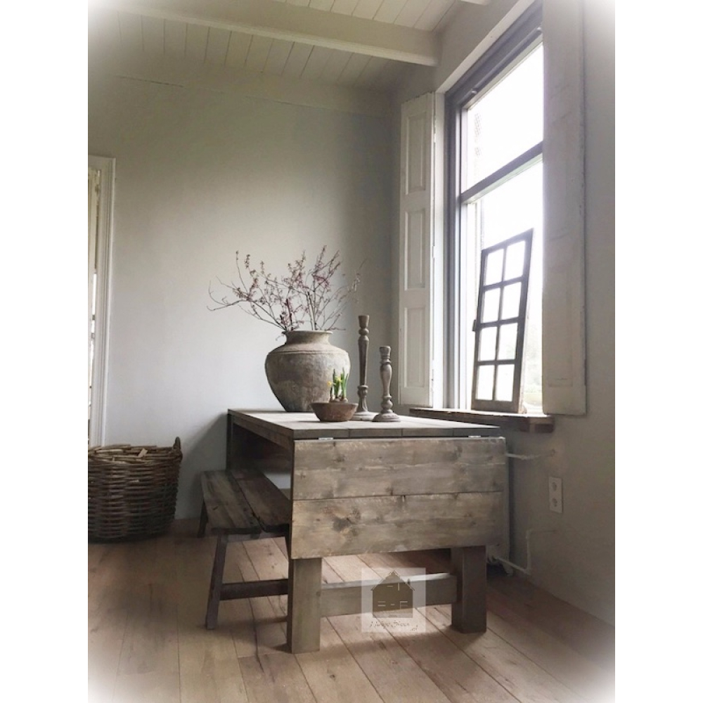 Super gave houten eettafel! De klep staat niet alleen heel gaaf; maar is natuurlijk ook super handig voor visite.