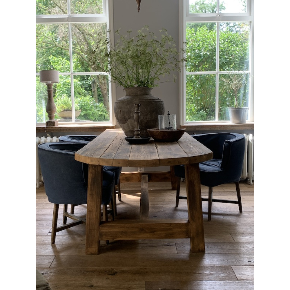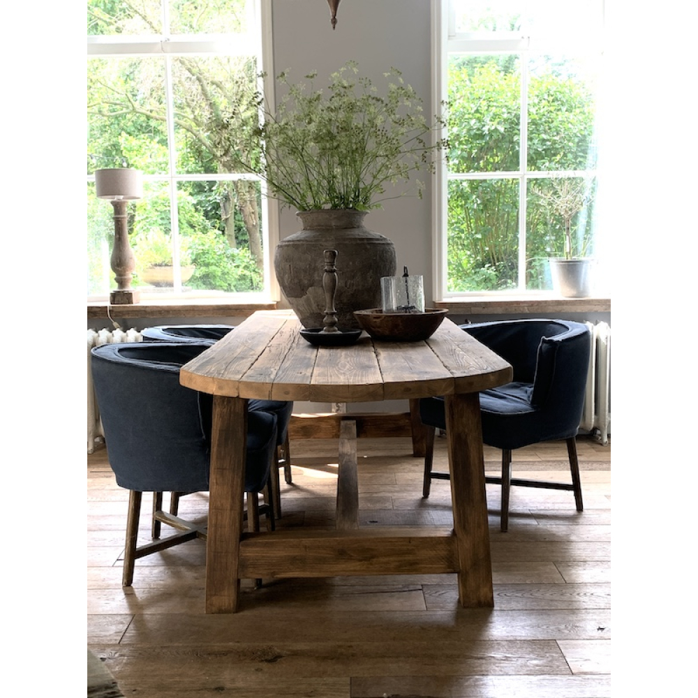 Stoere landelijke look..; gecombineerd met de sfeer van ronde belijningen.